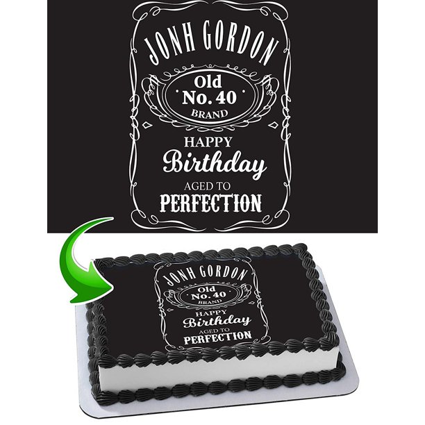 Whiskey Bottle Label - Edible Icing Image - printsoncakes This Jack Daniel's Bottle Label edible icing image perfectly creates a replicate bottle cake for a birthday, father's day, or special occasion. Available in multiple designs and sizes. Our Edible Icing Images are easy to peel and apply on your cake. All edible icing images are printed with vibrant food grade edible ink.