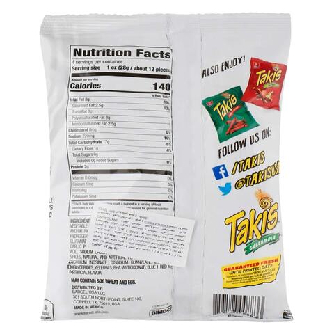 Are Takis Bad For You? 2 Proven Reasons To Consider For That Takis Nutritional Facts. It's easy to find the nutritional fact of takis from the back of the packet. Each 28 grams pack of takis contain: 16 grams of carbohydrates ... If you eat three bags in a single sitting, you are already loading your body with 420 calories. These are essentially empty calories. This means you are eating calories, but ... Takis (History, FAQ, Flavors & Commercials) - Snack History Takis has taken the North American continent by storm, quickly climbing from obscurity to popularity. Takis are shaped like small tortillas and seek to be viewed as a type of chip in the snack market. The chips found in a bag of Takis tend to be red and orange in color, although some flavors such as Guacamole are more yellowish-lime green in color. Stanford University UNK the , . of and in " a to was is ) ( for as on by he with 's that at from his it an were are which this also be has or : had first one their its new after but who not they have Stanford University UNK the , . of and in " a to was is ) ( for as on by he with 's that at from his it an were are which this also be has or : had first one their its new after but who not they have