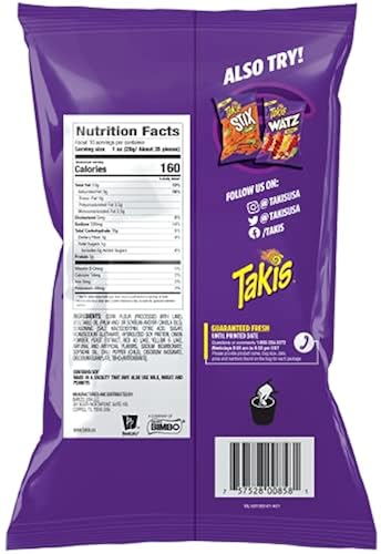 8 Best Healthy Chips 11-05-2020 · The bag sizes generally vary between 3, 4, and 5 ounces (85, 110, and 140 grams). ... Quinoa 101: Nutrition Facts and Health Benefits. Written by Adda Bjarnadottir, MS, RDN (Ice) Are Takis Chips Bad for You? - Healthline Takis are high in calories, fat, carbs, and sodium but lack important vitamins and minerals. Rich in sodium Like other salty snacks, Takis are high in sodium, packing a whopping 390 mg into each... Takis Fuego Hot Chili Pepper & Lime Rolled Tortilla Chips - 20 Oz Artificially flavored. Per 1 oz Serving: 140 calories; 2 g sat fat (10% DV); 410 mg sodium (18% DV). New size. Guaranteed fresh until printed date. Follow us on: Facebook/takis; Twitter: (at)takisusa. Questions or comments 1800-354-3372. Weekdays 9:00 am to 5:00 pm CST. Please provide product name, bag size, date, price and ... Takis (History, FAQ, Flavors & Commercials) - Snack History Takis has taken the North American continent by storm, quickly climbing from obscurity to popularity. Takis are shaped like small tortillas and seek to be viewed as a type of chip in the snack market. The chips found in a bag of Takis tend to be red and orange in color, although some flavors such as Guacamole are more yellowish-lime green in color.