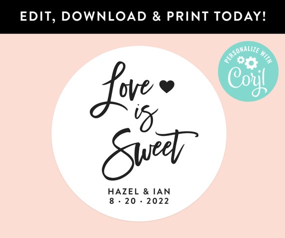 Love is Sweet Stickers Love is Sweet Labels Wedding | Etsy | Printable ... Love is Sweet Stickers, Love is Sweet Labels, Wedding, Anniversary etc., Customized - Rose Foil Sticker / DIY Print, Printable PDF - #RFC. DIGITAL ITEM * Digital Delivery * NO physical product will be sent! Make your party memorable with this printable sticker labels. Great decoration on treat bags, candle, mason jar or print on card stock and ...