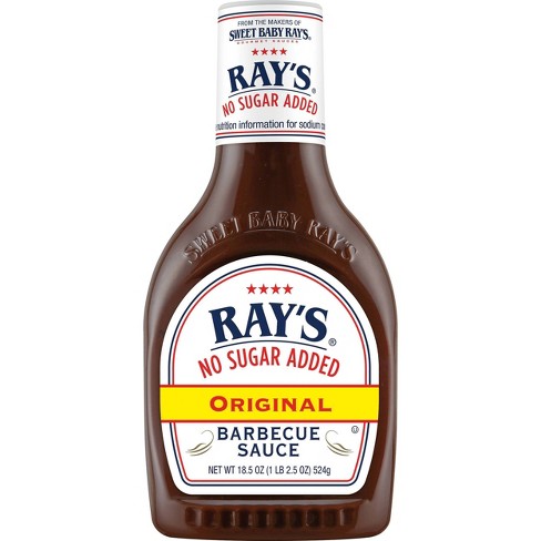 Introducing Ray's No Sugar Added Barbecue Sauces Barbecue deserves better. So we worked hard to make sure that Ray's No Sugar Added Barbecue sauces deliver sweet, smoky and tangy flavor with only 1g of sugar per serving. All that's left for you to do is pop the cap, lay it on thick and enjoy the signature barbecue flavor only Ray can deliver. The Sauce is the Boss!