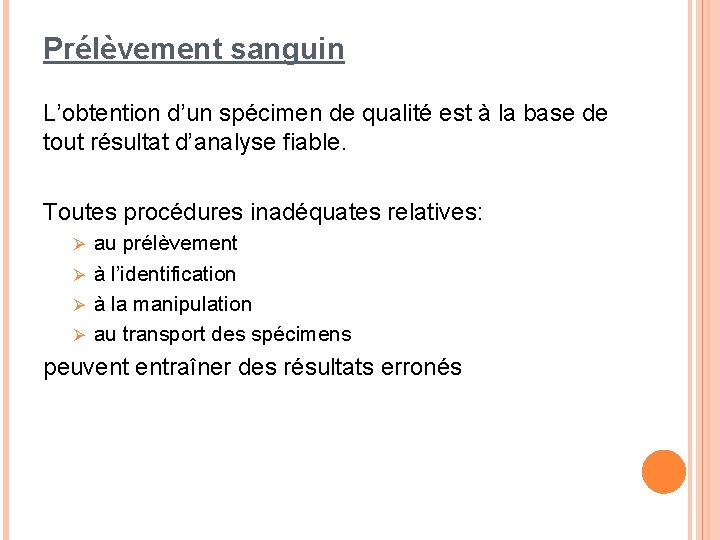 PDF LBG-PR-TRA-00130-01 Transport de spécimens humains exemptés et de ... Un échantillon d'un patient en bonne santé serait considéré « Spécimen humain exempté » si les vérifications ne touchent pas les microbes, les maladies ou les infections. 2. Prise de sang d'un patient normalement en bonne santé (aucun symptôme mais son dossier médical est inconnu). exempt human specimen - Traduction française - Linguee De très nombreux exemples de phrases traduites contenant "exempt human specimen" - Dictionnaire français-anglais et moteur de recherche de traductions françaises. ... mention "Échantillon humain exempté" ou "Échantillon animal exempté", selon le cas. daccess-ods.un.org. daccess-ods.un.org.