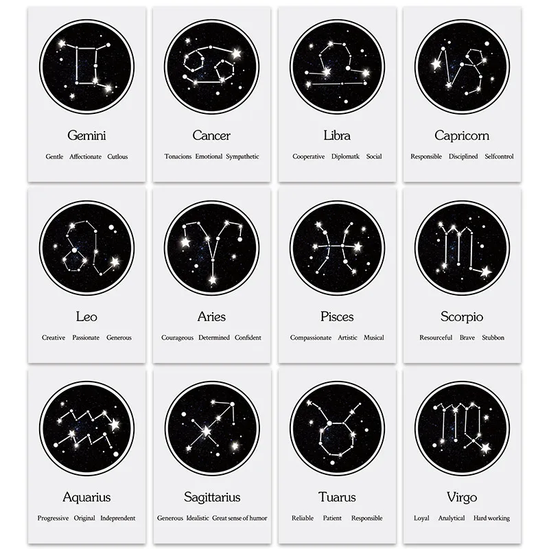 Poster Horoskop Nordik 12 Konstelasi Lukisan Kanvas Ramalan Dinding Seni Gambar Dinding untuk Ruang Tamu Rumah Dekorasi Cuadros