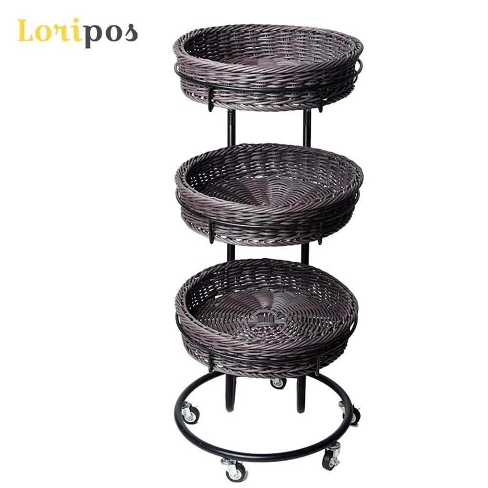 Bergerak Rotan Baseket Rak Shopping Mall Toko Sayuran Buah Rak Penyimpanan Toko Merchandise Rak Display