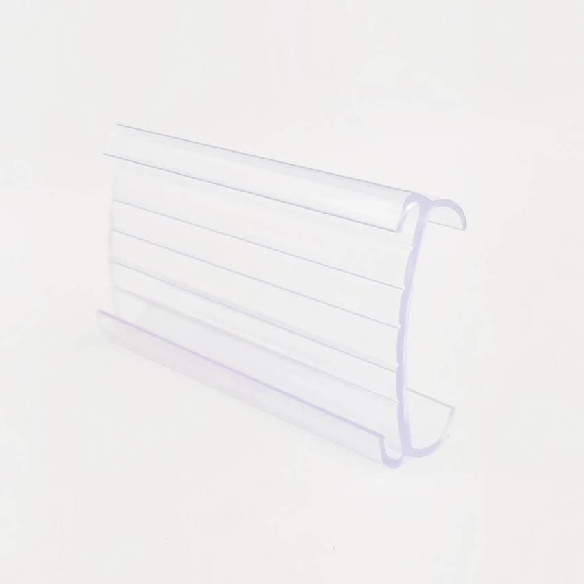 Shelf Label Holders - Movable Clear Shelf Label Holders - 3/4 in.H x 5 ... Can be used on any type of shelf; wood, metal or glass. Unique bottom loading design makes label changes a breeze. Made from crystal clear PVC with white label background. Label inserts included. Style: Movable shelf label holders. Construction: Crystal clear PVC. Dimensions: 3/4"H x 5"W x 8"D. Quantity/Pkg: 10/Pkg with 1 sheet of 12 inkjet ...