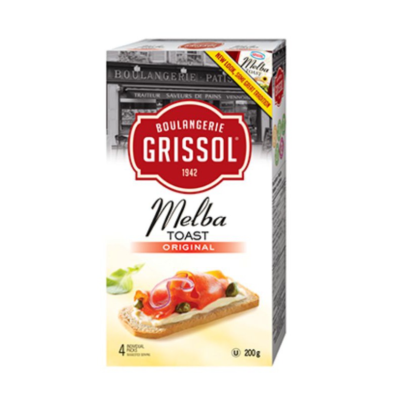 Boulangerie Grissol Melba Toast - Dare Foods There's a Melba Toast for every occasion. Try them all! Melba Toast is made better with no artificial colours or flavours, and they're low in fat and a good source of fibre. Enjoy them as part of your next meal with your favourite toppings and spreads. Whole Grain 12 Grain Bruschetta Original Sesame No Salt Olive Oil and Rosemary Rye with Seeds