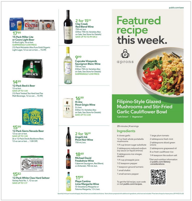 Weekly Ad | Publix Super Markets Prices are based on data collected in store and are subject to delays and errors. Fees, tips & taxes may apply. Subject to terms & availability. Publix Liquors orders cannot be combined with grocery delivery. Drink Responsibly. Be 21. This is the main content. See types of savings or read our Savings FAQs