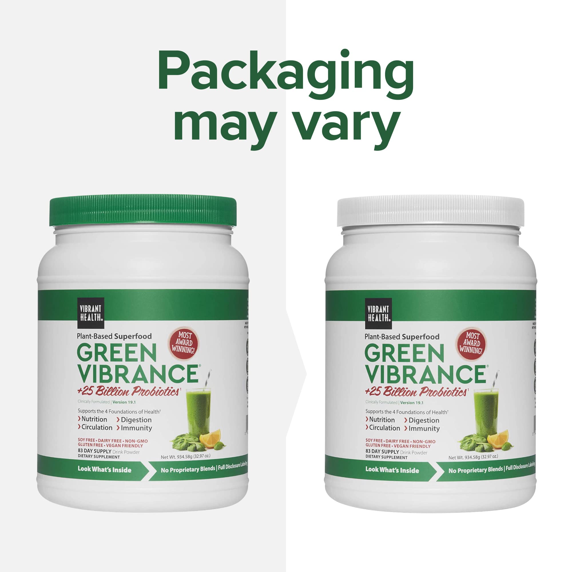 Vibrant Health Green Vibrance® Powder -- 12.5 oz - Vitacost Green Vibrance provides nutrients that help each cell function at peak efficiency. When we help each cell function at its best, the result may be increased energy and endurance, greater clarity of thought, more robust immunity, and a shift in all bodily functions toward the ideal. Helps improve and strengthen digestion and immune health Provides nutrition from nutrient-dense, organically grown ...