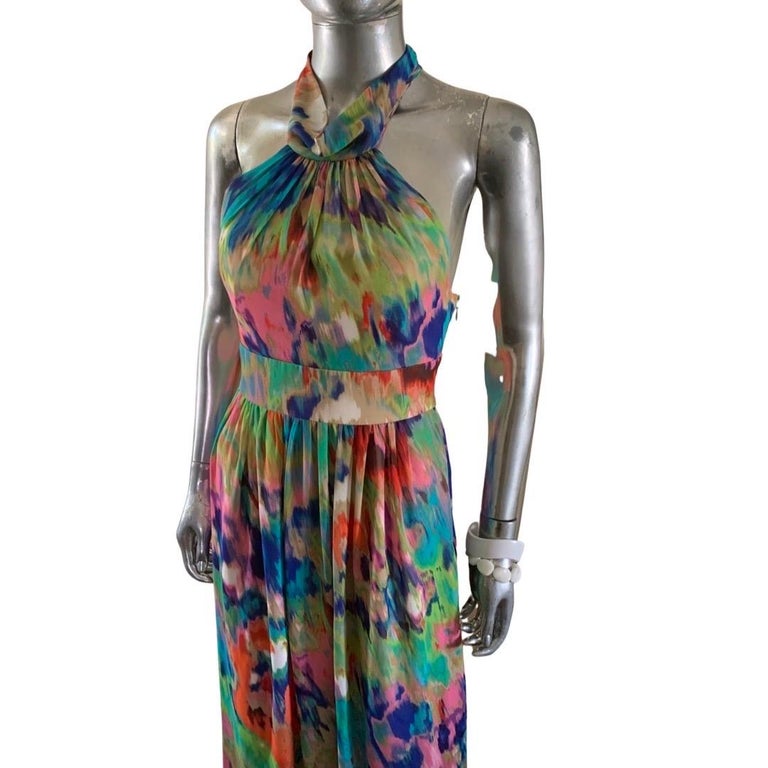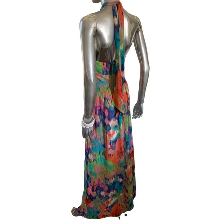 Saks Fifth Avenue RED Label Summer Bright Abstract Halter Dress ... Private label Saks fifth avenue for their Red collection label. Halter neck ties as a scarf or bow on the back. Built in bra. Nude color lined throughout.