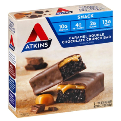 Atkins Bars Nutrition Facts | Healthfully According to the nutritional database CalorieKing.com, a 2.1 oz. S'mores flavor Atkins bar has 220 calories. Atkins bars are the right amount of calories for a mid-morning or mid-afternoon snack. Though there are many flavors of Atkins bars, S'mores flavor is one of the most popular. Products for a Low Carb Diet | Atkins Atkins offers a wide variety of nutrition bars, shakes and snacks to help support your Atkins lifestyle. Atkins Bars Snack on the go with tasty Protein and Snack bars. View All » Atkins Shakes Ready-to-drink shakes, choose from great tasting chocolate or vanilla for a smooth and filling drink. View All » Atkins Treats