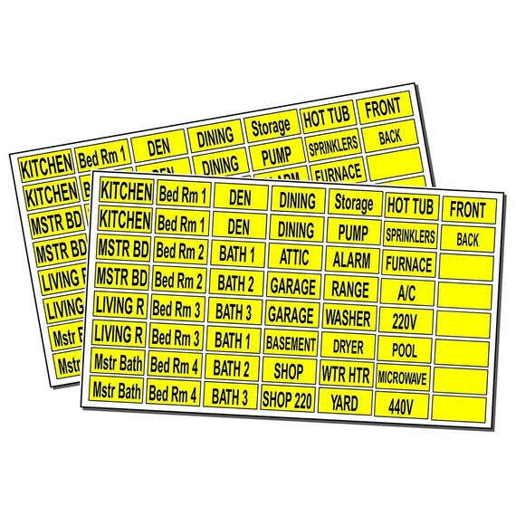 Circuit breaker box labels. Amazon.com: Circuit Breaker Panel Labels Circuit Beaker Box Sticker Labels- 3 Sheet Set Vinyl Decals for Fuse Box. Easy to Read Color Coded for Breaker Panel Boxes. Easy Identification. Weatherproof and Highly Adhesive. 129 Stickers. 5.0 (1) $999 ($3.33/Count) FREE delivery Fri, Mar 24 on $25 of items shipped by Amazon Small Business Leviton LSTIK Load Center Identification Stickers,White Circuit Breaker Labels - walmart.com Price when purchased online. $9.89. 68 Leviton Adhesive Circuit Breaker Labels Electric Wiring Panel Identifiers 12512-LAB. $10.99. Easy Read Breaker Box Decals. Tough vinyl labels for Circuit Breakers, great for Home Owners, Apartment Complexes and Electricians. Place stickers directly on the breaker switch, makes identifying the. 5. $68.51. How to Properly Set up Circuit Breaker Panel Labels - Krueger Electric Labelling your circuit breaker panel labels is also done best with at least one other person. One person can walk around inspect the fixtures that have power and another person can flip the circuit breaker. Finally, you'll need: Sticky labels that fit inside your electrical panel Amazon.com: Circuit Breaker Labels Circuit Breaker Box Label, 0.5x1.5 inch Plugs and Lights Circuit Breaker Waterproof Label Sticker,Lage Size Easy to Read,2 Sheet 144pcs 5.0 (1) $699 FREE delivery Sat, Mar 25 on $25 of items shipped by Amazon Or fastest delivery Fri, Mar 24 Leviton LSTIK Load Center Identification Stickers,White 4.4 (759) $731$9.81