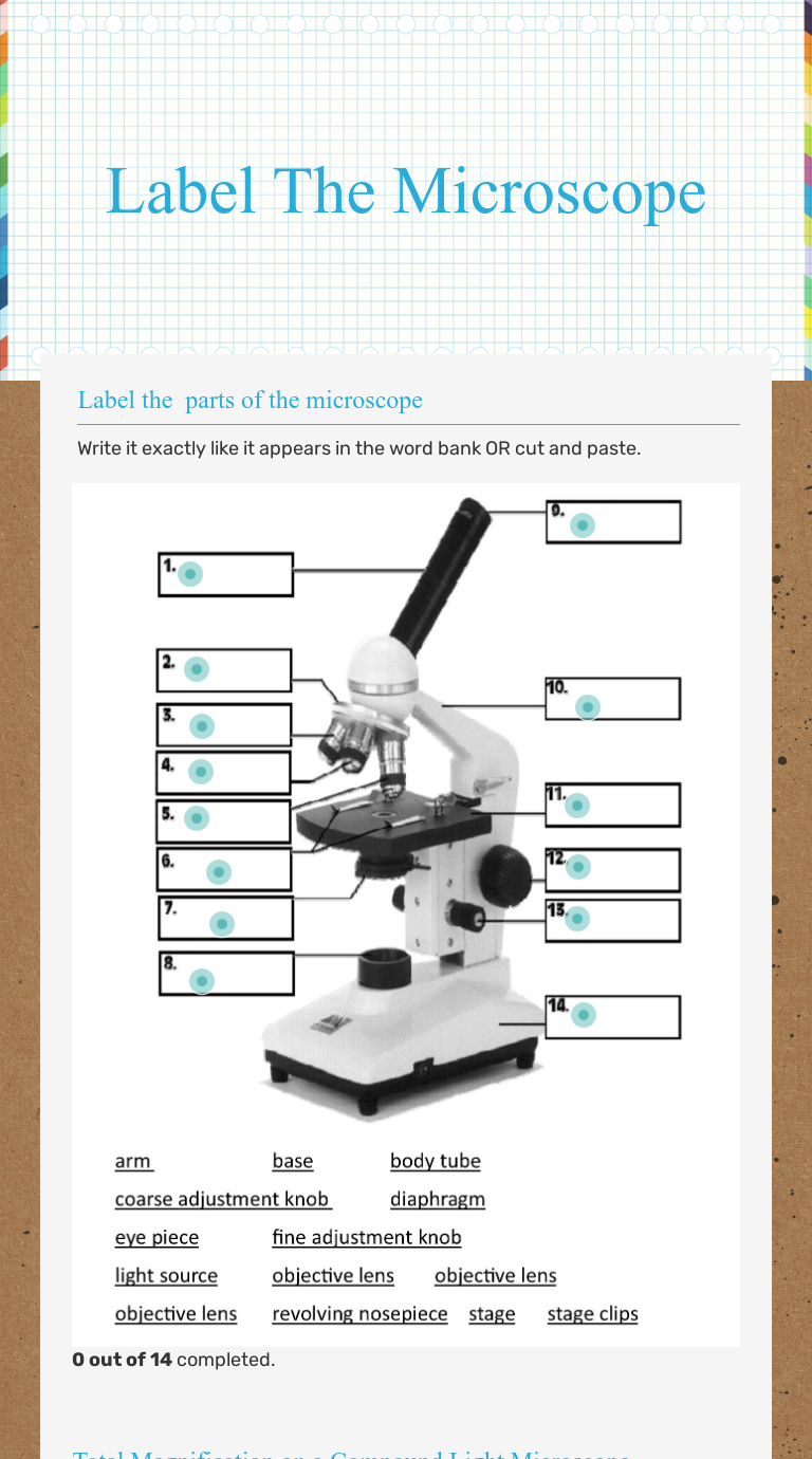 Microscope Parts Quiz - The Biology Corner Practice Naming the Parts of the Microscope. click.