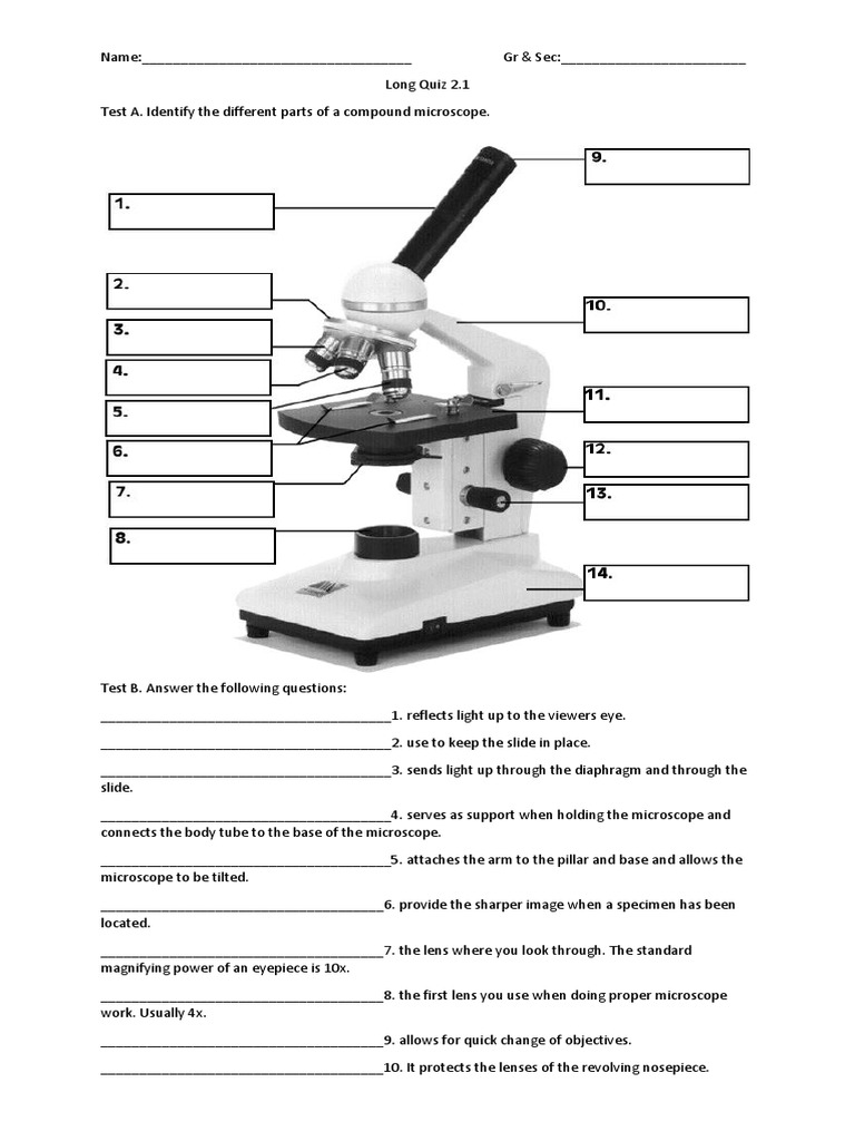 Parts of the Microscope Quiz - Amazon S3 1) Please label the parts of the microscope below by putting the letter that matches the location on the microscope. WORD BANK. A.) Base. B.) Fine Adjustment ... Microscope Quiz: How Much You Know About Microscope Parts ... - ProProfs Welcome to the ultimate Microscope Quiz. This quiz will check how much do you know about Microscope Parts and Functions! The microscope has been used in science to understand elements, diseases, and cells. You must have used a microscope back in high school in the biology lab. Do you believe you understood how to use it? Take up the test and see.