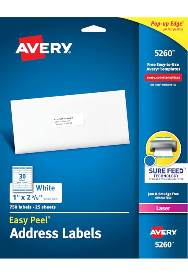 Avery Address Labels - 5160 - Blank - 30 labels per sheet The easy peel Address Labels are perfect for high-volume mailing projects, or to use for organization and identification projects. Create your own design by downloading our blank templates that you can complete within 4 easy steps in minutes. For pre-designed options try our Avery Design & Print Online Software and choose from thousands of our designs that can help you develop your own ... Matte White 1" X 2.625" Address Labels with Easy Peel | Avery 5260 5260 Quantity $ 19.99 Regular Price $ 19.99 Add to Cart Add to Favourites Avery ® White Rectangle Labels with Easy Peel ® and Sure Feed ™ Technology are bright white permanent labels that deliver superb print quality with sharp text and clear graphics. Designed with our unique Pop-Up Edge™ for faster, more efficient peeling and application. Label Templates | Find a Template | Templates - Avery.ca Avery ® Durable ID Labels Template with TrueBlock™ Technology for Laser Printers, 1¾" x 1¼" 6576 LEARN MORE Avery ® ID Labels Template for Laser and Inkjet Printers, 8⅛" x 5" 6573 LEARN MORE Avery ® Removable ID Labels Template for Laser and Inkjet Printers, 1¾" x ½" 6504 LEARN MORE Avery ® High Visibility Removable ID Labels Template Avery Label Template 5260 Teaching Resources | Teachers Pay Teachers - TPT This product includes vocabulary terms to print on Avery labels: 2-5/8 x 1 inch, 30 per page, and work with Avery templates 5160, 5260, 5660, 5960, 5979, 8160, and 18660. All vocabulary terms can be printed on Avery labels and attached to thick craft sticks to play a variety of games. This package also includes two choice menus to use with ...