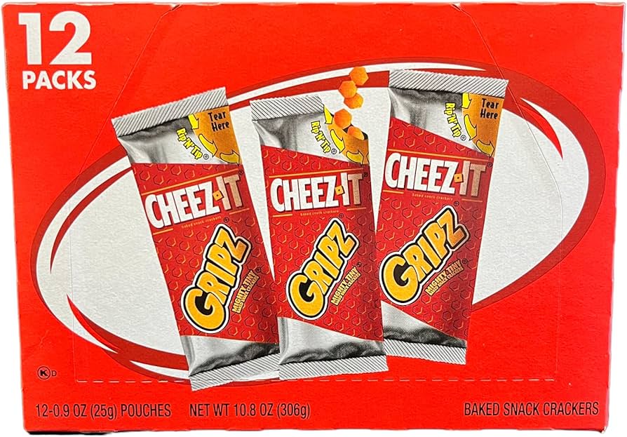 Cheez-It Gripz Tiny Baked Snack Crackers, Lunch ... Buy Cheez-It Gripz Tiny Baked Snack Crackers, Lunch Snacks, Office And Kids Snacks, Original, 10.8Oz Box (12 Packs) at Walmart.com. Cheez-It Crackers in Snacks, Cookies & Chips - Walmart Cheez-it Crackers